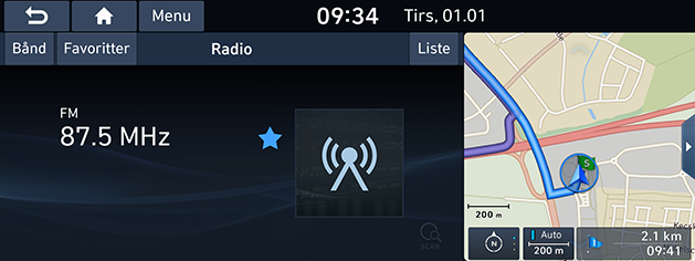 - [Radio]: Skiftes til den sidst afspillede radio mode.