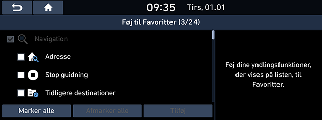 Hvis dine favorit menupunkter allerede er tilføjet, tryk på [Menu] > [Tilføj].