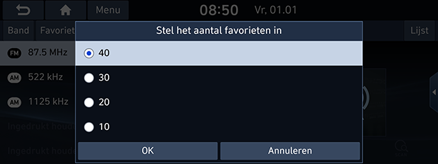 U kunt het aantal favorieten dat op de lijst opgeslagen wordt, instellen.
