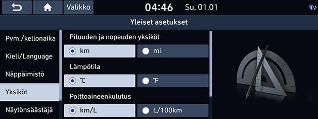 - Paina [SETUP] > [Yleinen] > [Yksiköt].