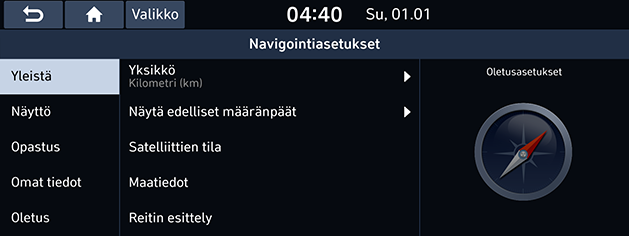 - Paina [SETUP] > [Navigointi] > [Yleinen].