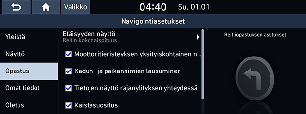 - Paina [SETUP] > [Navigointi] > [Opastus].
