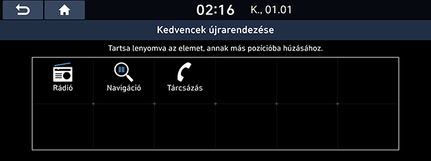 Görgesse le a HOME képernyőt oldalra, hogy minden elemet át tudjon helyezni a rendszer menübe.