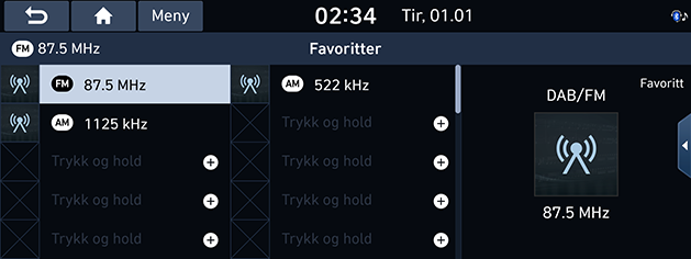 - Trykk på [Favoritter], og velg deretter frekvensen du vil lytte til.