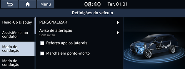 - Prima [SETUP] > [Veículo] > [Modo de condução].