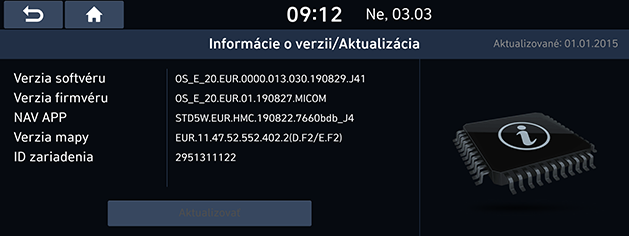 Môžete zobraziť verziu softvéru, verziu firmvéru, verziu aplikácie pre navigáciu, verziu mapy a identifikačné číslo zariadenia.