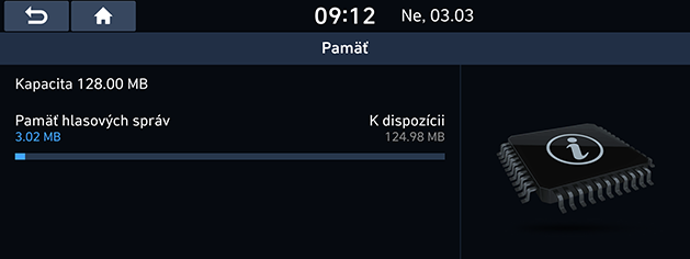 Môžete zobraziť priestor pamäte na hlasové poznámky (celkový ukladací priestor, použitý pamäťový priestor, zostávajúci pamäťový priestor).