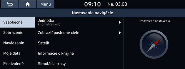 - Stlačte tlačidlo [SETUP] > [Navigácia] > [Všeobecné].
