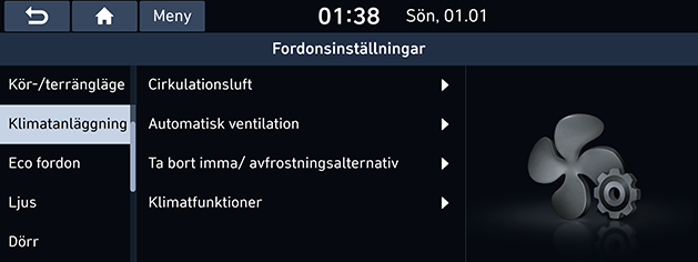 - Tryck på [SETUP] > [Fordon] > [Klimatanläggning].