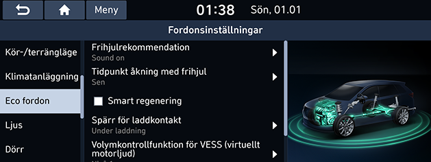 - Tryck på [SETUP] > [Fordon] > [Eco fordon].