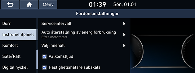 - Tryck på [SETUP] > [Fordon] > [Instrumentpanel].