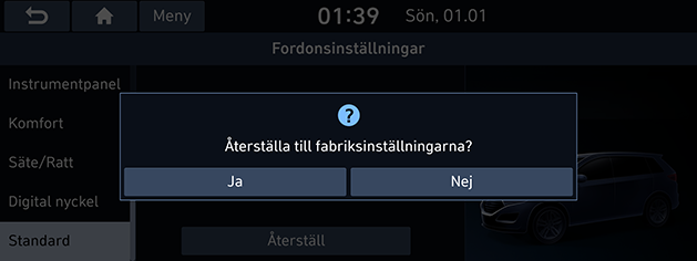 - Tryck på [SETUP] > [Fordon] > [Standard] > [Återställ].