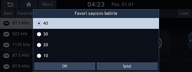 - İstasyonları [Favoriler] menüsüne kaydetmek isterseniz, [