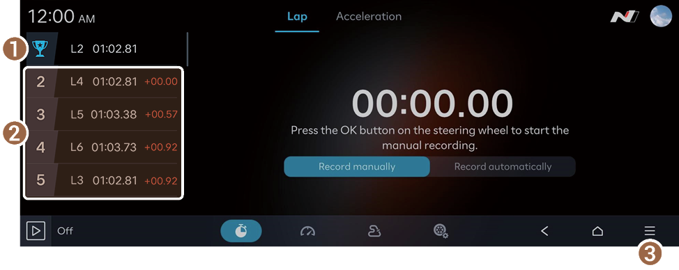 Automatically measuring lap times (if equipped)