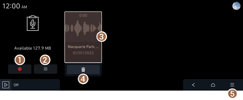 You can use the microphone on the vehicle to record and play voice memos.