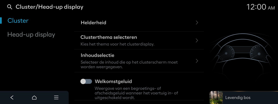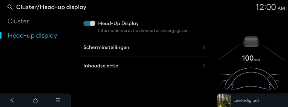 - Druk op het startscherm op Instellingen ▶ Cluster/Head-up display.