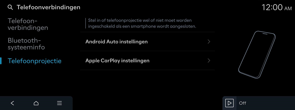 Stel in of telefoonprojectie wel of niet moet worden ingeschakeld als een smartphone wordt aangesloten.
