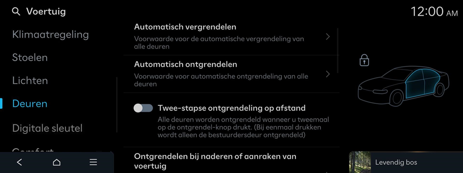 - Beschikbare instellingen kunnen verschillen, afhankelijk van het voertuigmodel en specificaties. Raadpleeg de gebruikershandleiding van de auto voor meer informatie over de functies.
