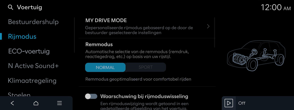 Een rijmoduswijziging wordt getoond in een gedetailleerde afbeelding van het voertuig.