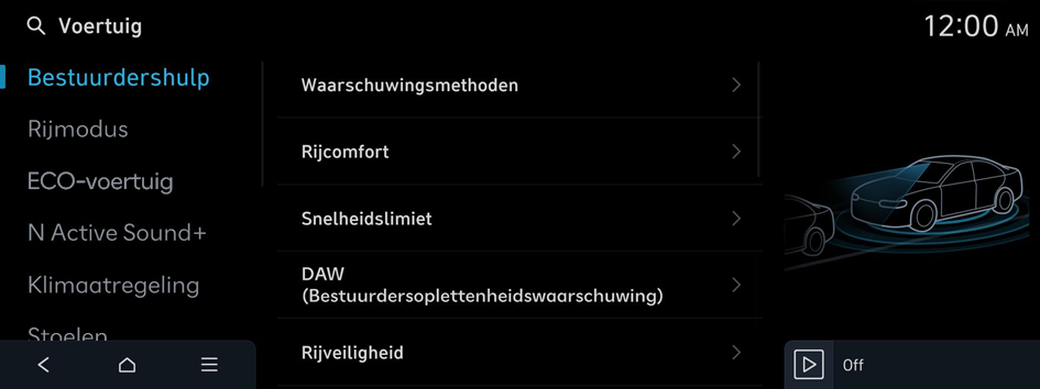 - • Haptische waarschuwing: activeren van de stuurvibratie bij waarschuwingen.