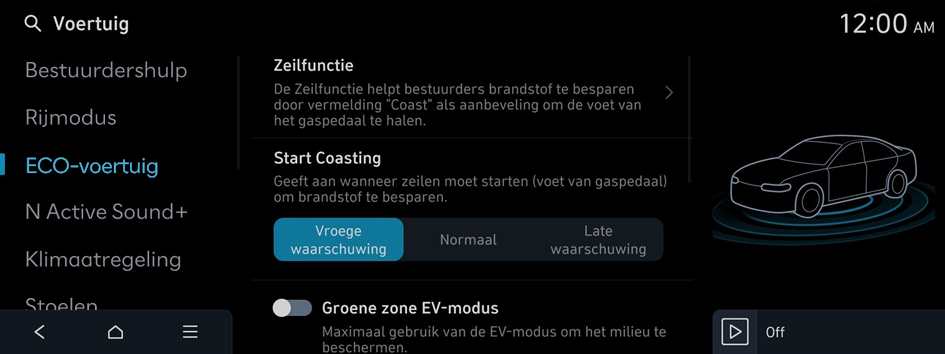Stel de comfortfuncties in die beschikbaar zijn voor ECO-voertuigen.