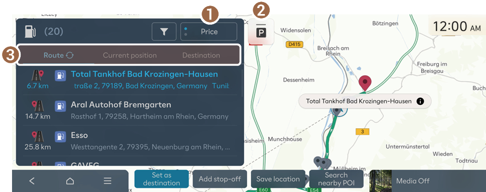 To change the type of surrounding POIs on the map, move to the Map screen and then press