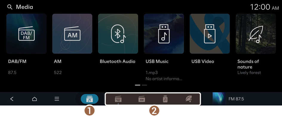 at the top left of the screen or swipe the screen down. - It is not possible to return to the previous screen if the USB Video player is run.
