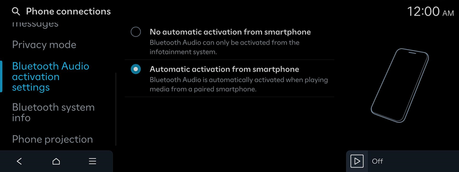Starts playing Bluetooth Audio when playing media on your phone. You can also play Bluetooth Audio only in the vehicle.