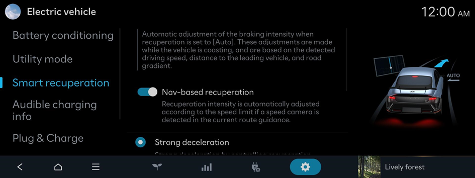 While coasting with recuperation set to [Auto], the recuperation level will be automatically adjusted based on the distance to the leading vehicle, driving speed, and road incline.