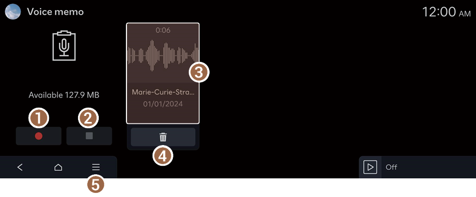 You can use the microphone on the vehicle to record and play voice memos.