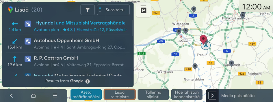 - Etsi välietappi haluamallasi tavalla. ▶ Katso "Reitin löytäminen helposti", "Edellisen määränpään etsiminen", "Lähistöllä olevien kiinnostavien kohteiden etsiminen".