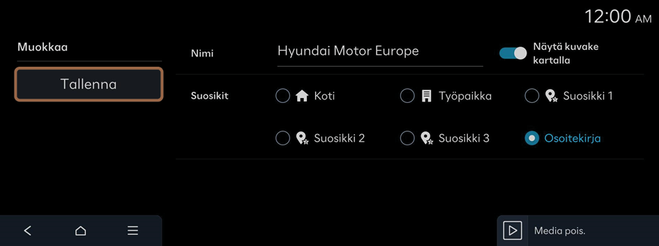 Nykyisen sijainnin tallentaminen suosikkipaikaksi