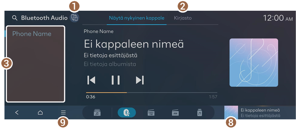 Toista musiikkitiedostoja Bluetooth-yhteydellä yhdistetystä äänilaitteesta.