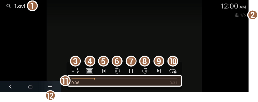 - Näyttää toistettavien videotiedostojen määrän ja parhaillaan toistettavan videon järjestysnumeron.