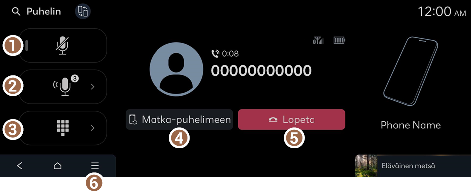 - Bluetooth-puhelun aikana ei ole mahdollista siirtyä toiseen näyttöön, kuten mediatilan näyttöön.