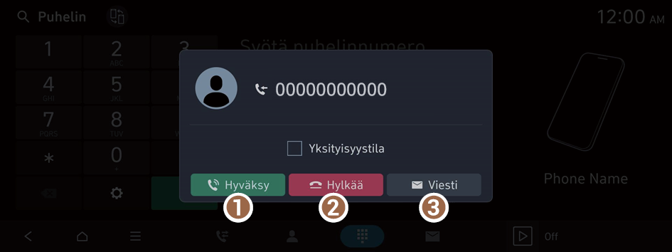 - Voit vastata puheluun painamalla näytöllä Hyväksy tai painamalla ohjauspyörän puhelupainiketta.