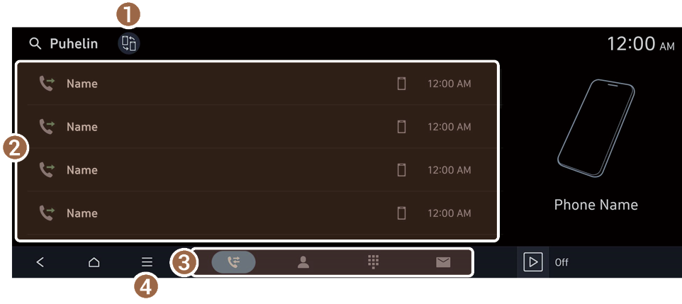 - Näytä luettelo, joka sisältää laitteesta järjestelmään ladatut viimeksi soitetut puhelut.