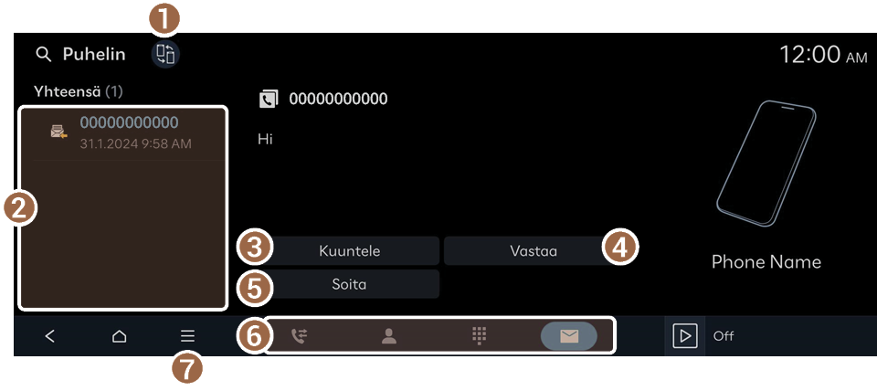 - Jos lähettäjän tietoja ei tallenneta, vain puhelinnumero tulee näkyviin.