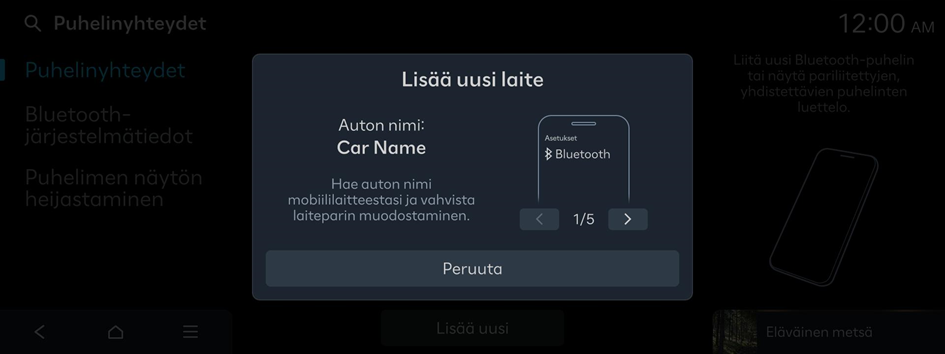 - Ota Wi-Fi ja Bluetooth käyttöön yhdistettävässä älypuhelimessa, ja valitse auton järjestelmä haettujen Bluetooth-laitteiden luettelosta.