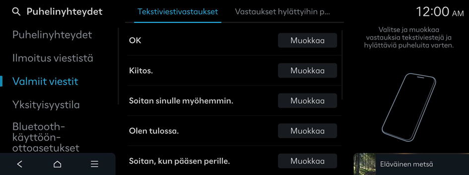 Valitse ja muokkaa vastauksia tekstiviestejä ja hylättäviä puheluita varten.