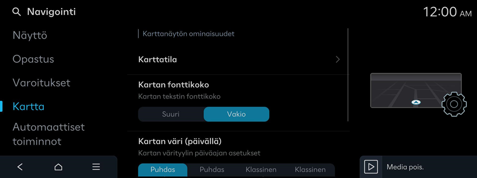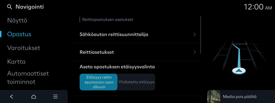Navigointiasetusten näyttö tulee näkyviin.