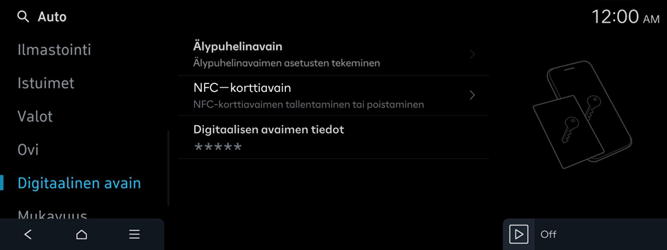 Digitaalinen avain (jos varusteena)