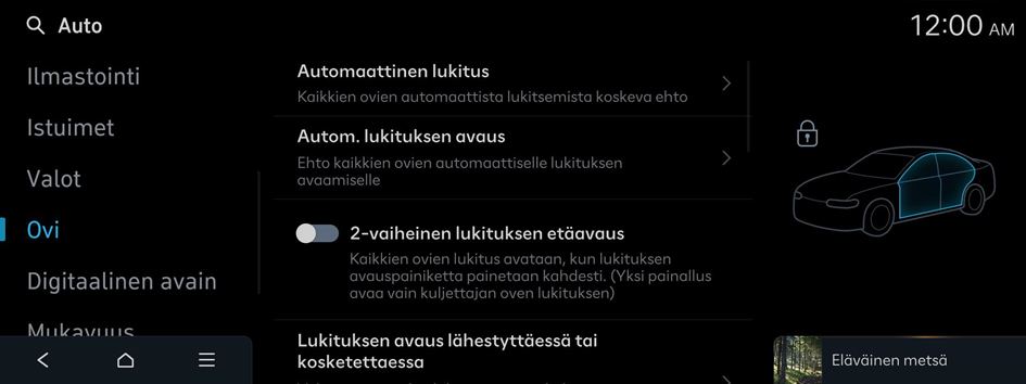 Ovet lukittuvat automaattisesti, kun kuljettaja poistuu auton luota älyavain tai digitaalinen avain mukanaan.