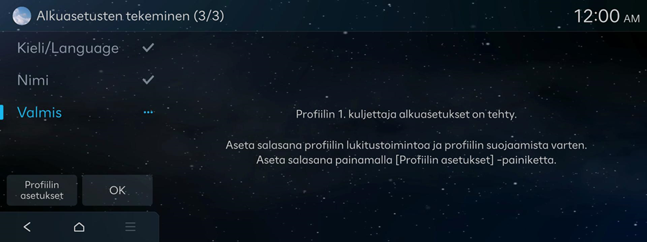 - Kun alkuasetusten näyttö tulee näkyviin, paina OK.