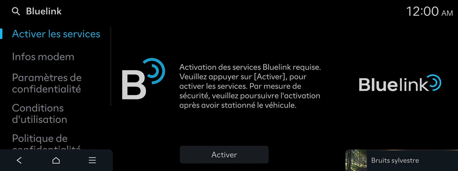 - Dans l'écran d'accueil, appuyez sur Paramètres ▶ Bluelink ▶ Activer les services.