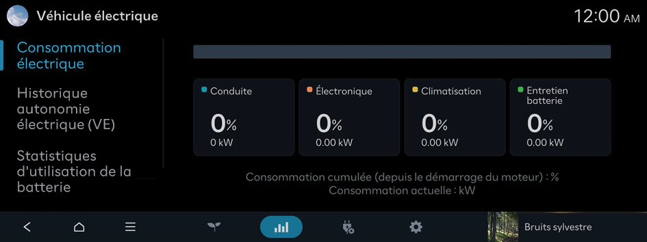 Vous pouvez afficher la puissance électrique consommée par la transmission, la climatisation, les systèmes électriques et la fonction d'entretien de la batterie.