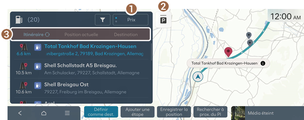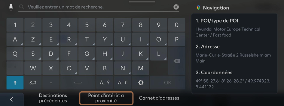 ▶ Infos de proximité ▶ Point d'intérêt à proximité sur l'écran de la carte.