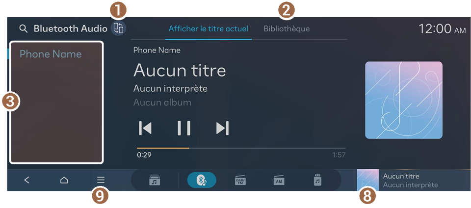 - Affiche les appareils Bluetooth avec fonction de lecture média.