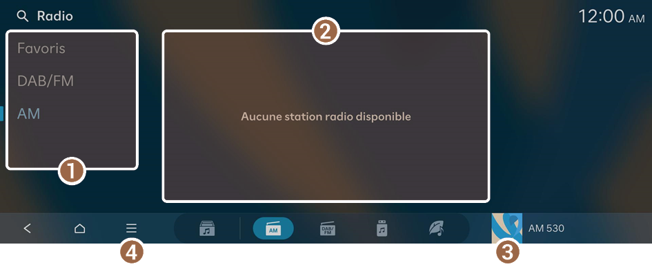 - Sur l'écran d'accueil des médias, appuyez sur AM.