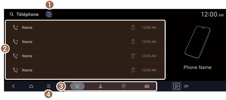 - Utilisez le bouton de déplacement du volant pour parcourir la liste des appels récents. Appuyez sur le contact souhaité pour le sélectionner.